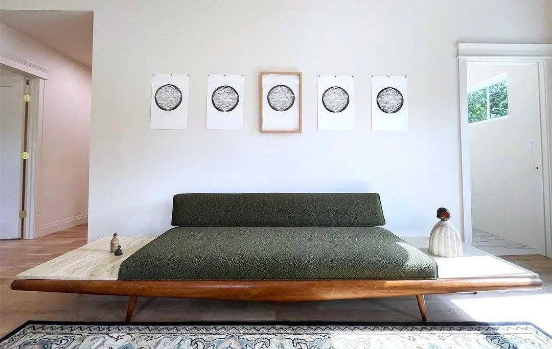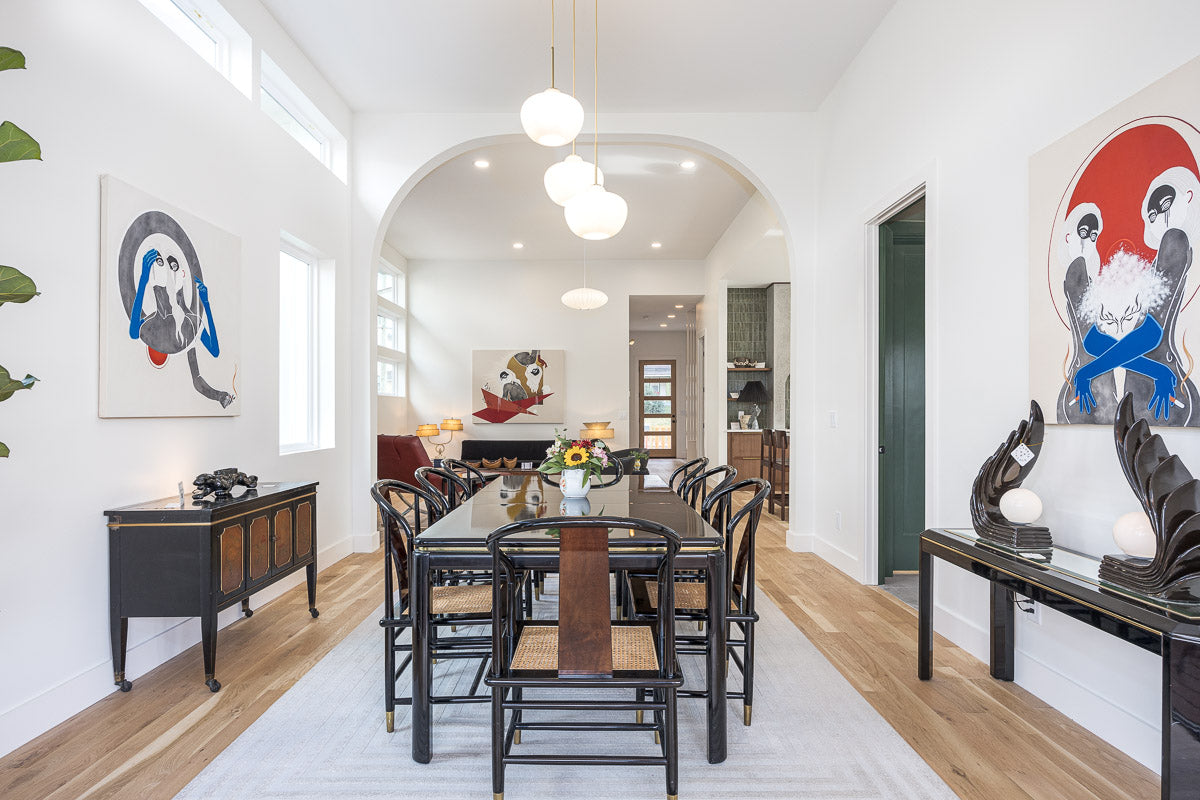 We stage with all story design pieces. If it's not vintage, it's made by a visual artists or designer that is local to the region.