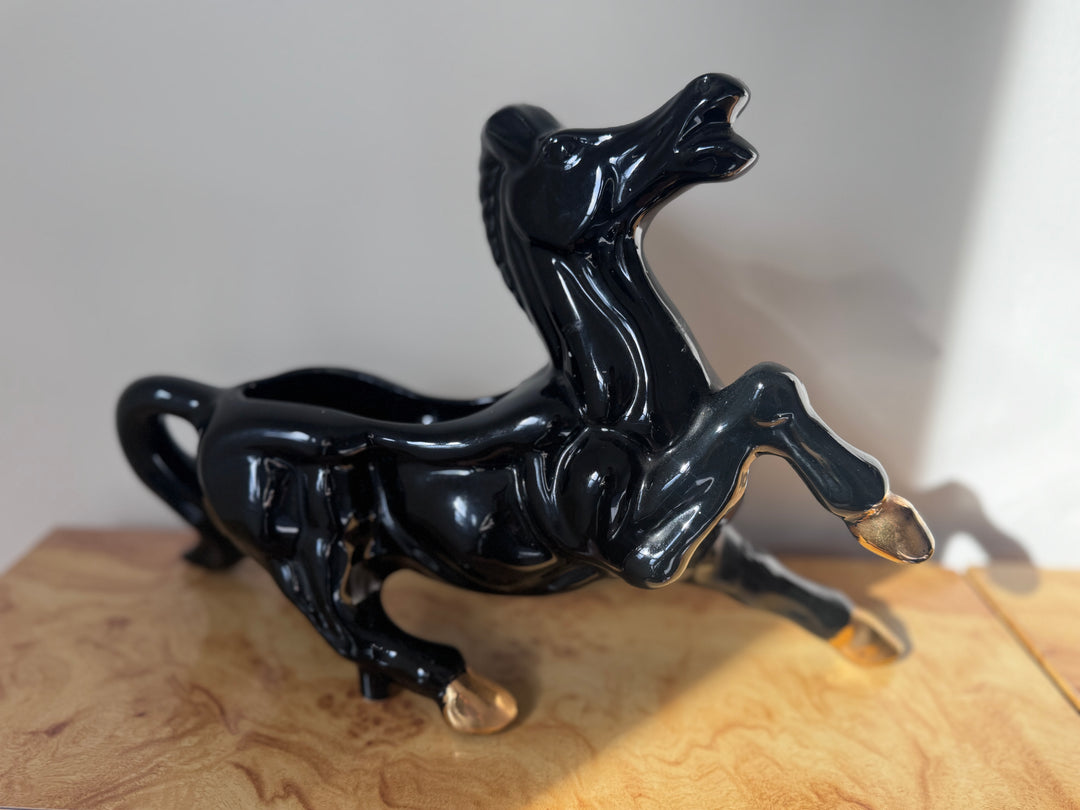 Pair of Mid-Century Modern Black Horse Statue / Planters (price for pair)